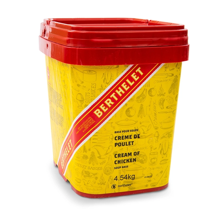 Mélange d'ingrédients secs formulé pour produire un velouté d'un jaune délicat, à la texture crémeuse parsemée de persil et au bon goût de poulet.