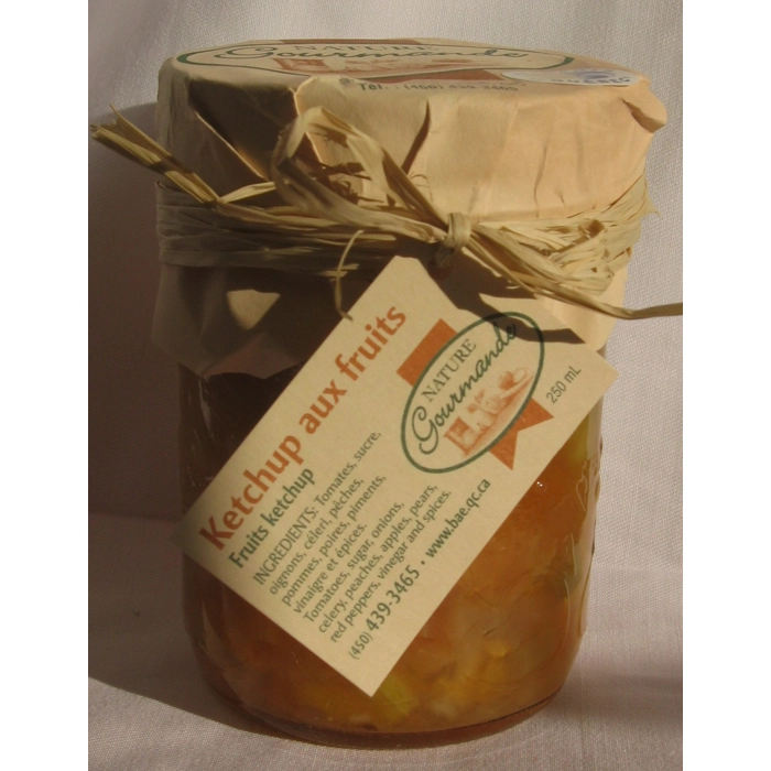 Confectionné de façon artisanale et rappelant les saveurs d'antan, notre ketchup est délicieux en accompagnement avec vos viandes fumées, tourtière et raclette.