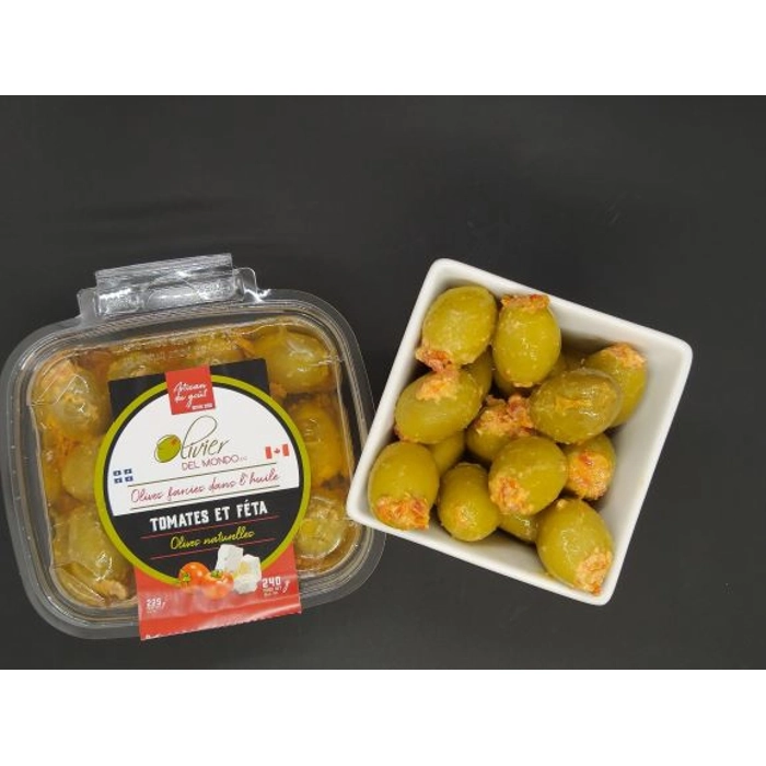 Olives vertes farcies aux tomates séchées et fêta