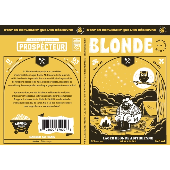La Blonde du Prospecteur est une bière d’interprétation Lager abitibienne. Cette Lager de soif à la robe dorée possède des arômes délicats d'orge maltée, de houblons nobles et de miel. Une Lager craqu...