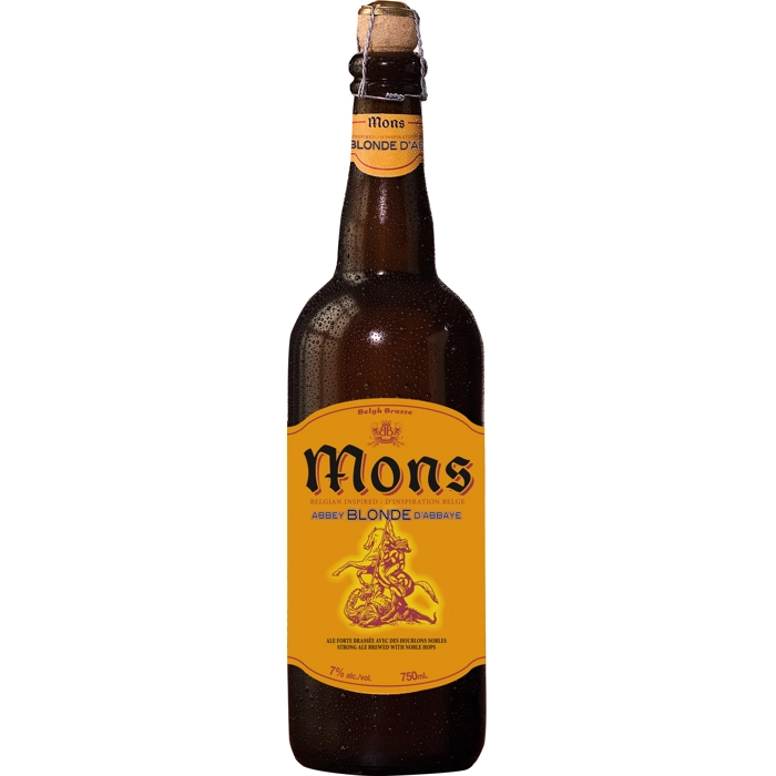 La Mons Blonde d’Abbaye est élaborée à l’aide d’un mélange de blé malté et non malté infusé avec du houblon Styrian Golding pour l’amertume et du houblon Saaz pour l’arôme.
