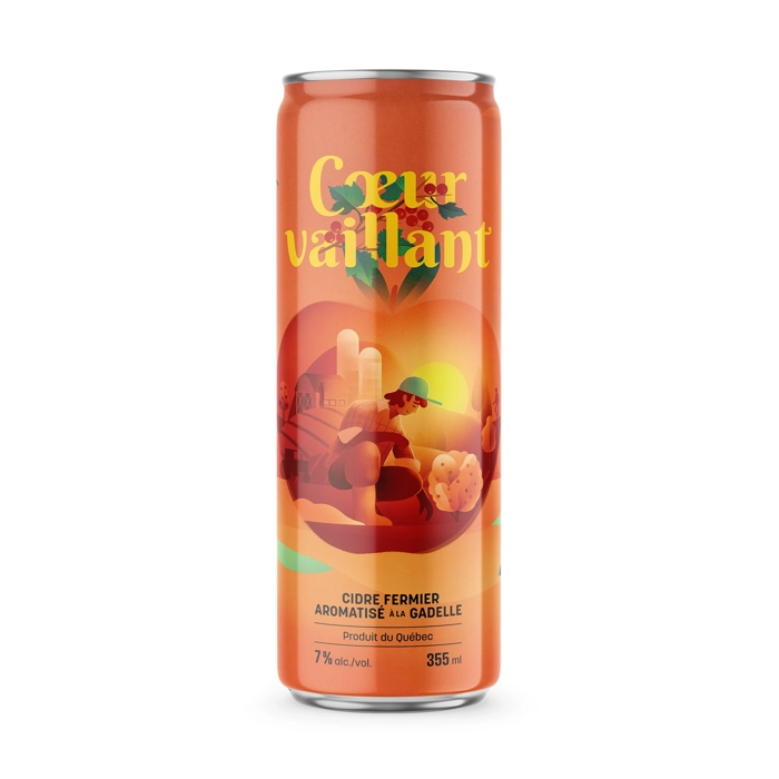 Produit spécialement pour le 100e anniversaire de l’Union des producteurs agricoles par le maître-cidriculteur Christian Hébert du Domaine Hébert, Cœur vaillant est un cidre fermier aromatisé à la gad...