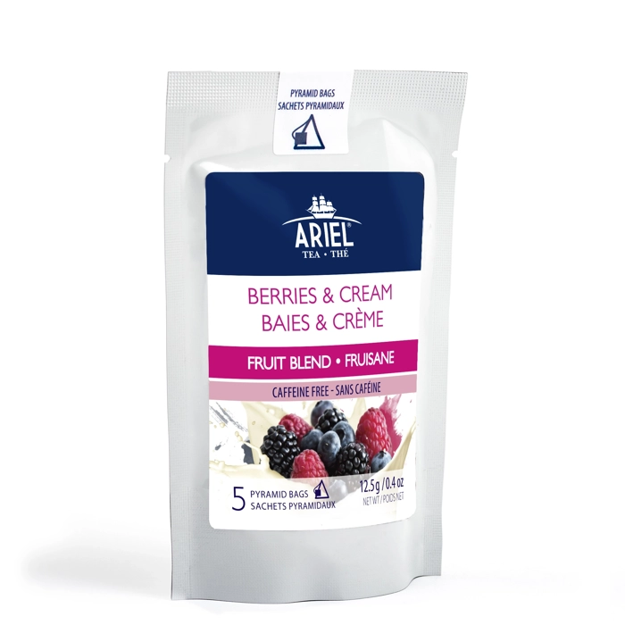 Une frais infusion de fruits! savourez le goût riche de la crème appuyé par une touche rafraîchissante de baies mixtes. Délicieux chaud ou glacé. Sans caféine.