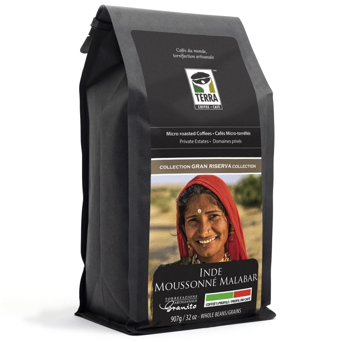 Ce café indien est unique grâce au traitement spécial qu'il subit appelé "Monsoon". Un procédé qui lui donne un goût particulièrement corsé tout en étant riche et remarquablement onctueux. Tout à fait...