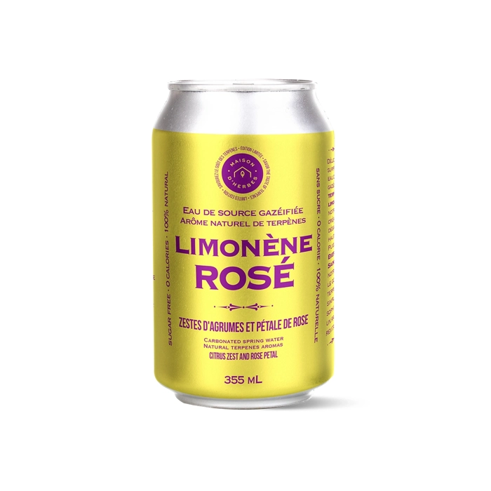Eau gazéifiée aux arômes de terpènes Limonène Rosé
