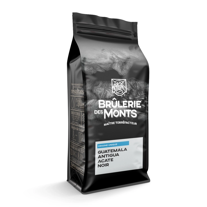 La région d'Antigua est entourée de trois volcans, créant un véritable microclimat à haute altitude (entre 4 600 et 5 600 pieds) qui produit des cafés uniques. Cet Acate Noir est riche, avec beaucoup ...