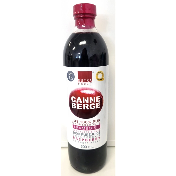 Fait de canneberges du Québec. Fabrication artisanale à la main. Il est recommandé de diluer 4 fois ce jus avec de l'eau ou un autres jus (orange, pommes) pour le consommer. Recette sur l'étiquette.