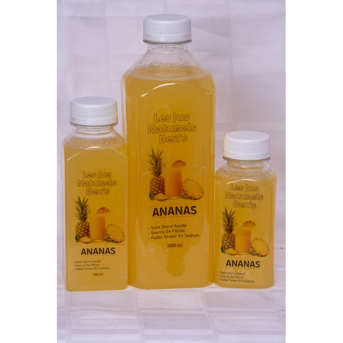 Une gamme variée de produits : jus de fraises, de bleuets, cocktails bleuets-fraises, bleuets -framboises, jus d'ananas, de gingembre, de Hibiscus-fraises, Cocktails ananas-passion