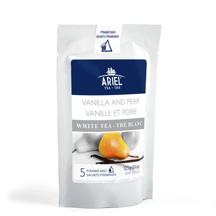 Les notes fraîches et pures du thé blanc chinois se marient agréablement avec le parfum divin de la vanille et la saveur sucrée des poires Bartlett.