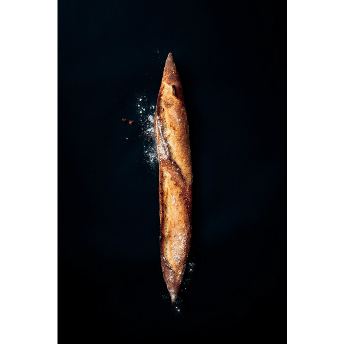 Baguette au levain de pure tradition. Le goût du levain acidulé se démarque très bien. Elle relèvera la saveur de vos pâtés et fromages.