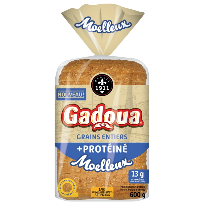 Ce pain est fait de grains entiers et constitue une source de protéines provenant du soya et du blé. Il ne contient ni arômes ni colorants artificiels, aucun sucre ni gras ajoutés, et représente une b...
