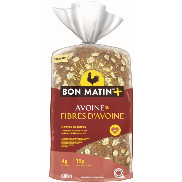 Profitez des bienfaits des fibres d'avoine grâce au pain Avoine x fibres d'avoine de Bon Matin +. Regorgeant d’ingrédients nutritifs et un source de fibres, ce pain contient 4 g de fibres et 15 g de g...