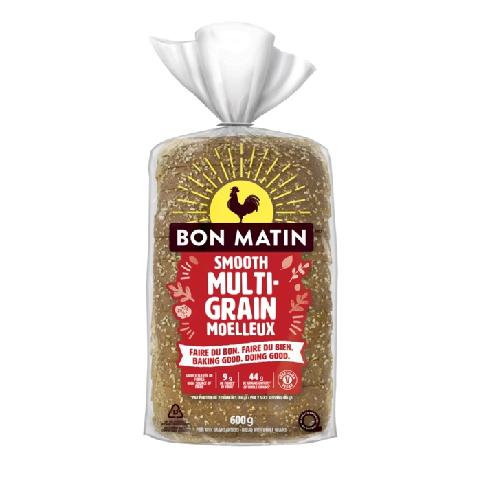 Le pain multigrain moelleux Bon Matin est un choix délicieux à tout moment de la journée. Ce pain à la fois sain et savoureux contient 44 g de grains entiers par portion et est une source élevée de fi...