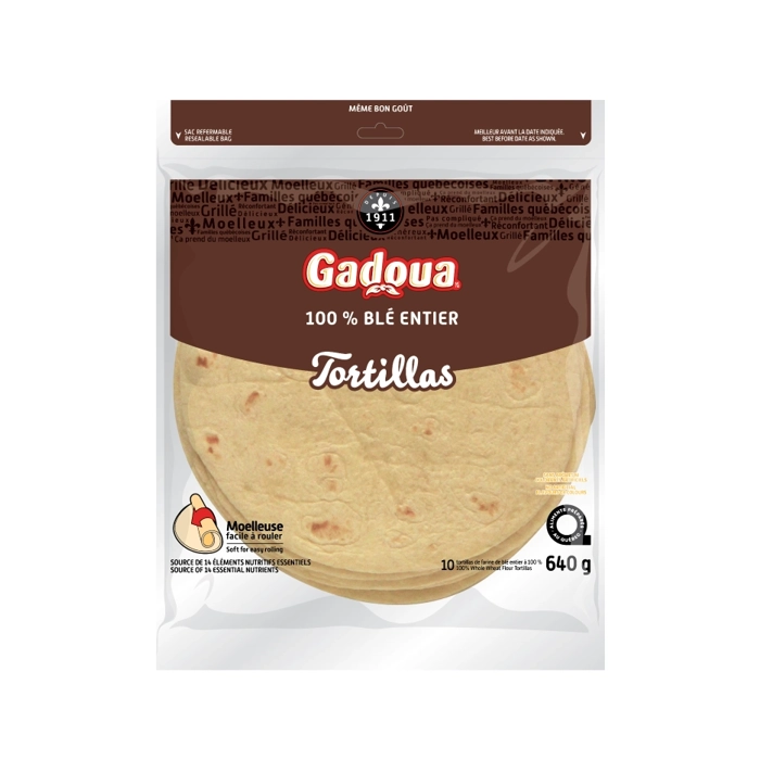 Nos généreuses tortillas faites de farine de blé entier à 100 % sont hyper savoureuses et, surtout, délicieusement moelleuses. Parfaites pour vos soirées burritos, quésadillas et pizza, ou simplement ...