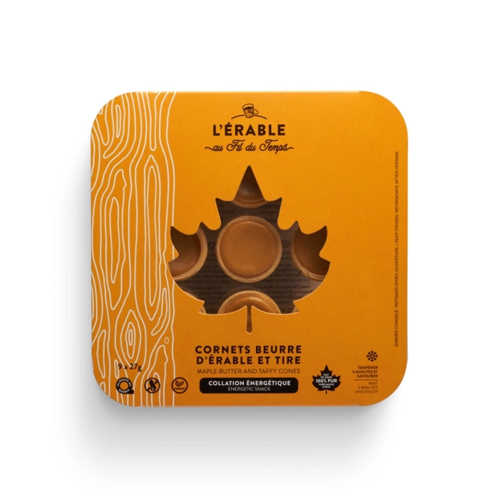 Cornets au beurre d'érable surgelés, emballés sous-vide.