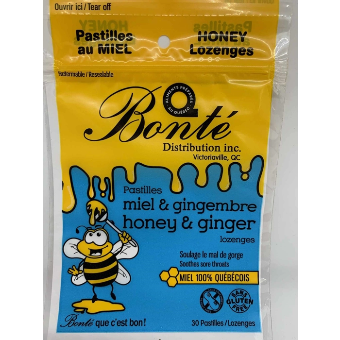 Pastille au Miel & Gingembre Une pastille au miel avec un bon coup de gingembre.
