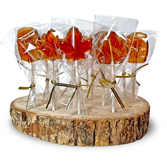 Sac de 12 suçons à l'érable. Faits partir de sirop d'érable biologique pur à 100% et de glucose (conservation).