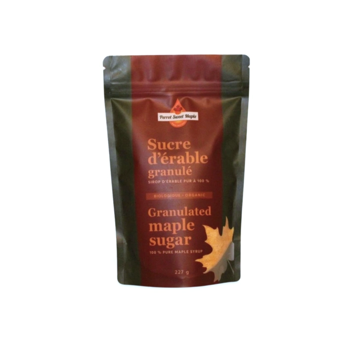 Sac de sucre d'érable granulé 227 g, ce sucre d'érable est le même que l'on peut retrouver dans les petits sachets.