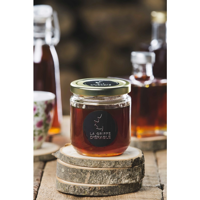 La Griffe d’Érable est une entreprise familiale qui opère depuis 1995. Avec ses 28 000 entailles réparties sur différentes parcelles à Saint-Wenceslas et Saint-Léonard d’Aston, elle produit plusieurs dizaines de barils par année qui sont destinés au marché en vrac. En parallèle à cela, elle développe ses propres stratégies de mise en marché pour les sous-produits de l’érable. Avec son concept novateur de bar à sucre, où il est possible de prendre place au comptoir et d’observer en direct le sucrier qui travaille au poêle, l’entreprise veut rejoindre les orphelins de cabane à sucre qui cherchent une expérience de l’érable réinventée. Dans son développement, c’est justement une expérience griffée que tente d’offrir l’entreprise à sa clientèle. C’est pourquoi la Griffe d’Érable n’hésite pas à joindre l’art et la culture dans ses stratégies de séduction.