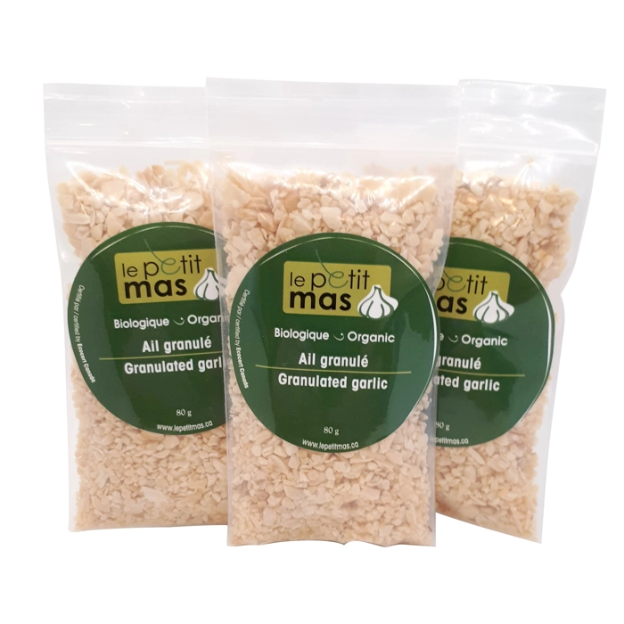 Notre ail granulé du Québec, certifié biologique, a un goût intense à utiliser avec tact! Parfait pour les mélanges d'épices, les sauces, et les longues cuissons.