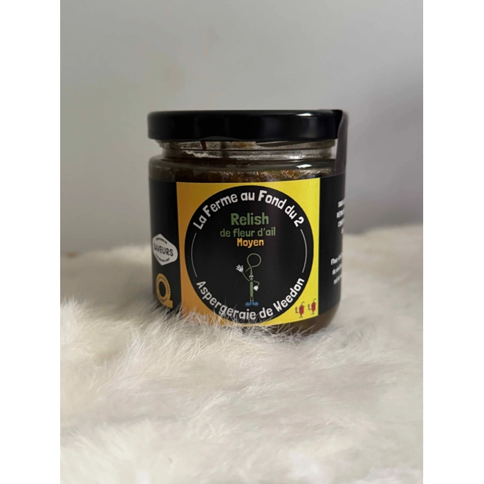 Relish de fleur d'ail épicée moyen, à base de fleur d'ail bio de notre ferme
