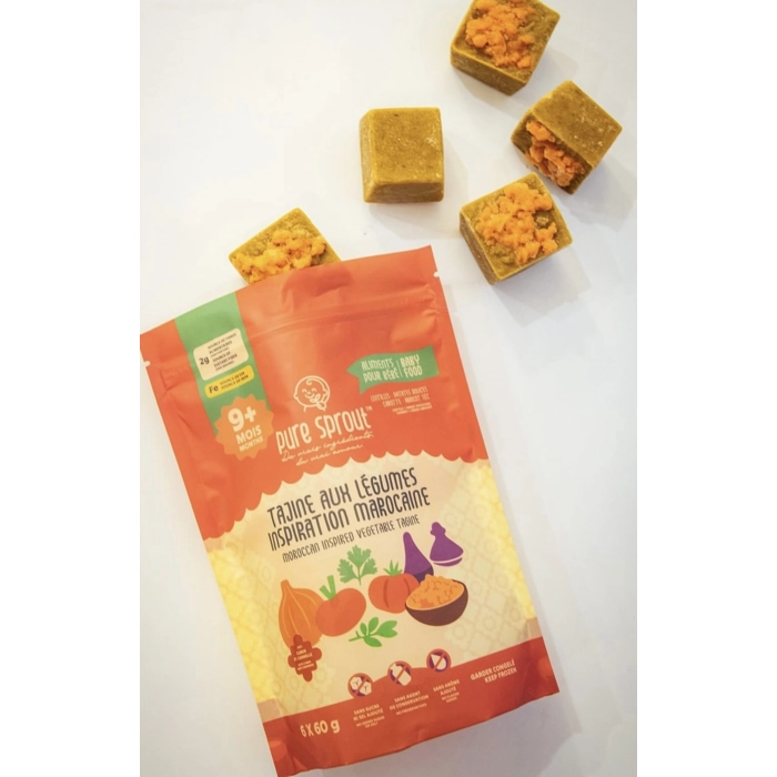 Pure Sprout est une entreprise québécoise qui prépare des purées pour bébés congelées, offertes en portions de 60 g. Destinées aux bébés dès 6 mois, nos recettes sont élaborées et approuvées par une nutritionniste pédiatrique pour garantir un apport adapté en fer, sodium et potassium, conforme aux besoins nutritionnels des tout-petits.