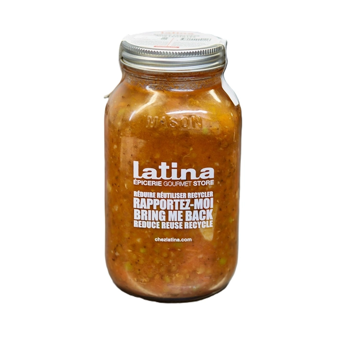 Une sélection de ces conserves est maintenant disponible pour les détaillants du Québec. Sauces pour pâtes, soupes, repas, condiments, charcuteries, bouillons, fonds, sauces pour accompagner les viandes et desserts sont préparés par Latina Cuisine inc à Montréal. Ces produits sont réalisés en petites quantités, sans agent de conservation. Les conserves Latina sont vendues dans des pots de verre sérigraphiés à l’effigie du Latina et consignés afin d’encourager les clients à les retourner. Ils seront stérilisés et réutilisés, afin de limiter l’emballage et protéger l’environnement.
