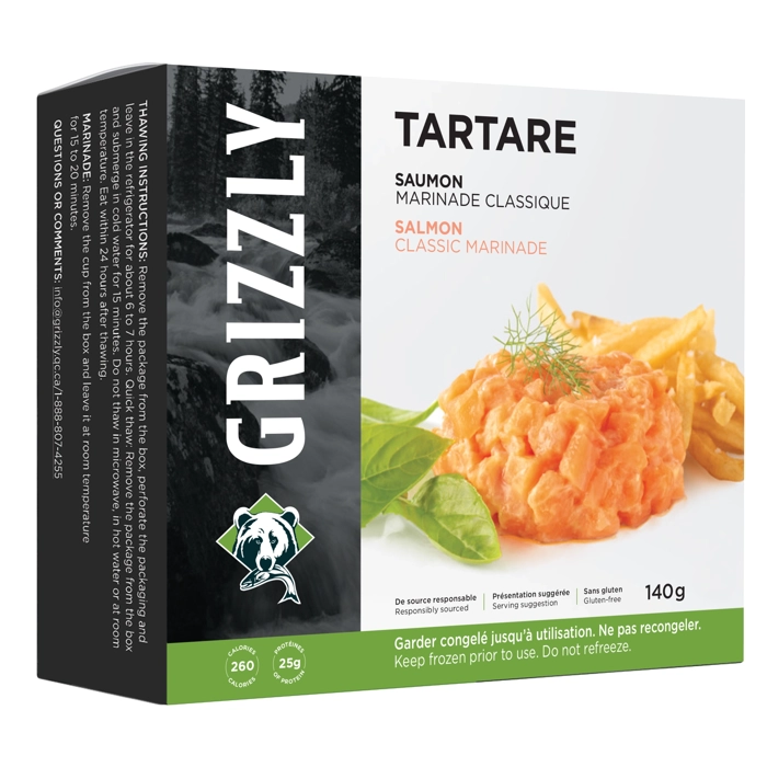 Un tartare clé en main qui contient 120g de saumon atlantique nature déjà en cubes ainsi qu'une marinade classique (20ml)