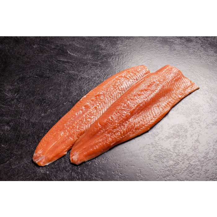 Truite arc-en-ciel, disponible éviscérée, en filets (avec ou sans peau), fumée à froid ou nature en portions.