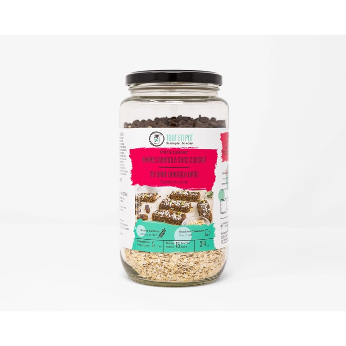 Collation prête à cuisiner fait d'ingrédients déshydratés. Le client ajoute les ingrédients liquides au mélange d'ingrédients secs afin de compléter la recette.