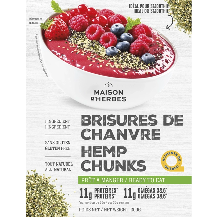 Il s'agit de graines décortiquées de cannabis sativa L. bio (chanvre) en provenance du Québec.