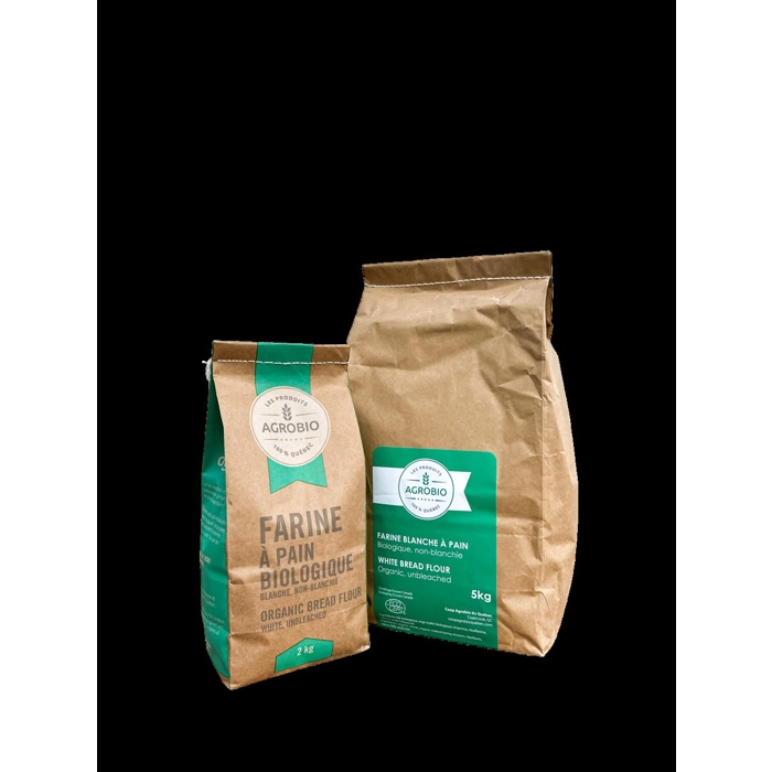 Moulue sur cylindres à Les Cèdres, cette farine blanche (Non-Blanchie) est fabriquée à partir de grains biologiques cultivés au Québec.
