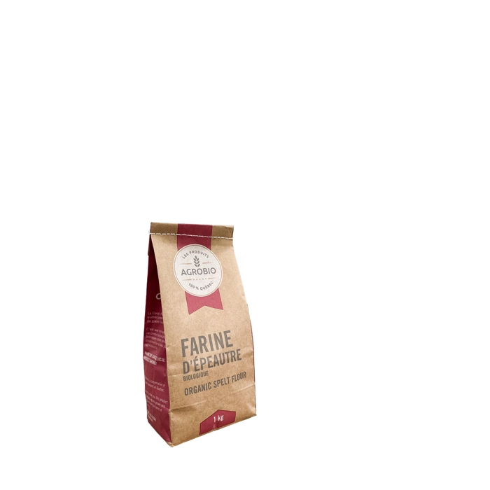 Moulue sur pierre, cette farine d'épeautre est fabriquée à partir de grains biologiques cultivés au Québec.