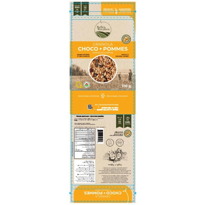 Granola biologique avec pommes déshydratées et canneberges du Québec et chocolat, préparé à partir de nos récoltes, sur notre ferme de La Malbaie dans Charlevoix.