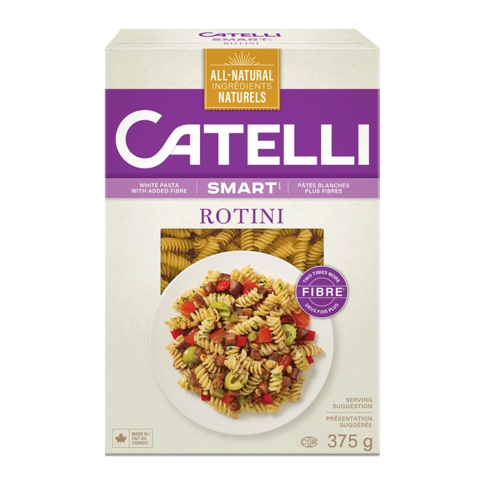 - Elles sont riches en fibres : Les pâtes Catelli Smart sont spécialement fabriquées avec du blé canadien riche en fibres pour fournir 2 fois plus de fibres que les pâtes Catelli Classique et faciliter l’atteinte d’objectifs nutritionnels.