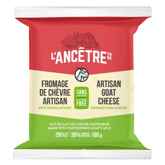Fromage de chèvre artisan style cheddar. Fait de lait de chèvre du Québec pur à 100 %. Sans lactose et sans gluten.
