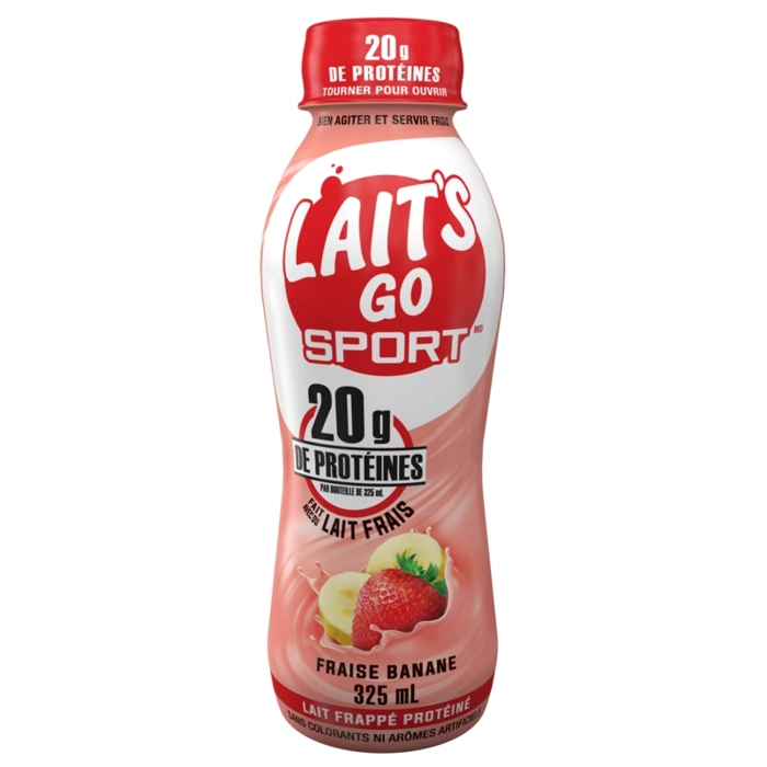 Le goût délicieux aux fraises et bananes, aucun arôme artificiel, 25 % moins de calories et de sucre que Lait's Go Sport Chocolat. Impossible de ne pas apprécier ce lait frappé après ton entraînement.
