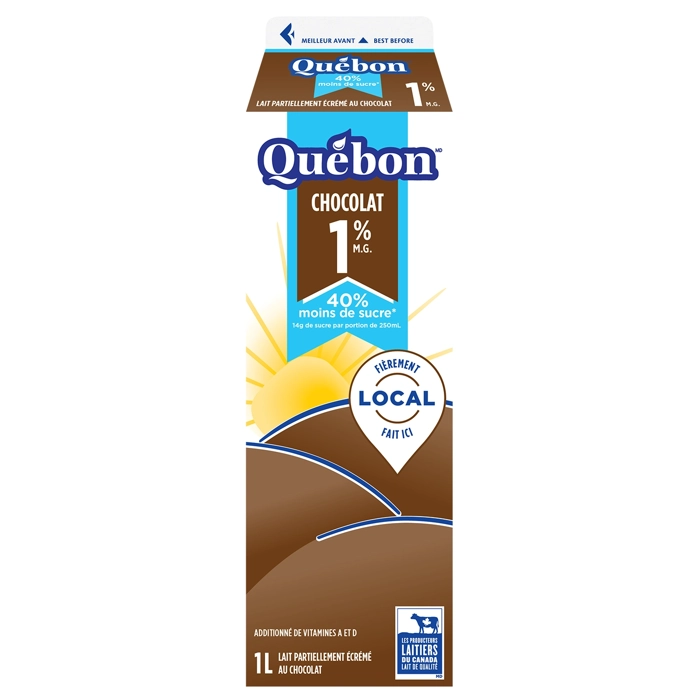 Avec 40 % moins de sucre, ce lait au chocolat Québon réduit en sucre est enrichi de vitamines A et D et constitue une excellente source de protéines. Il combine les bienfaits du lait à une touche choc...