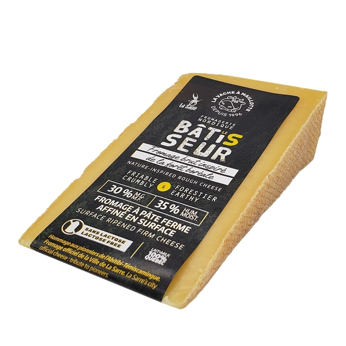 Le bâtisseur, ce fromage à croûte mixte, fait pour le 100 ème de la ville de La Sarre et gagnant du Caseus 2017 catégorie fromage ferme possède des arômes beurrés et légèrement fruités.