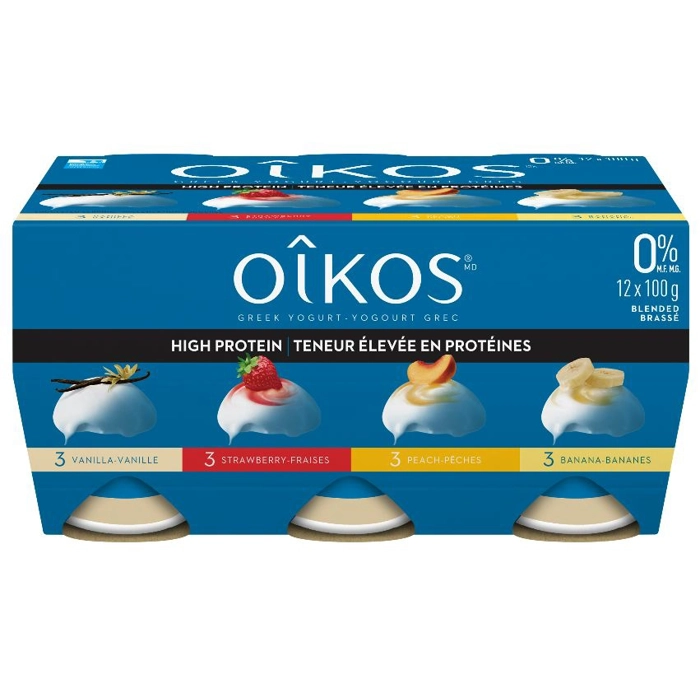 Yogourt Grec 0% mg Pêche-Vanille/Fraise/Banane