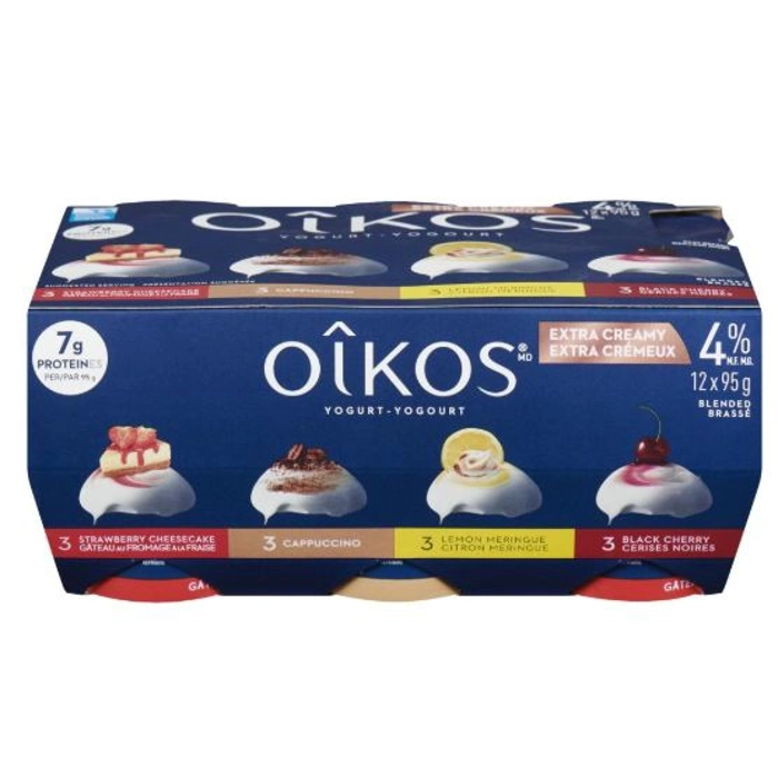 Yogourt Grec 4%mg Gâteau Fromage Fraise, Cappuccino, Citron Meringue, Cerises Noires
