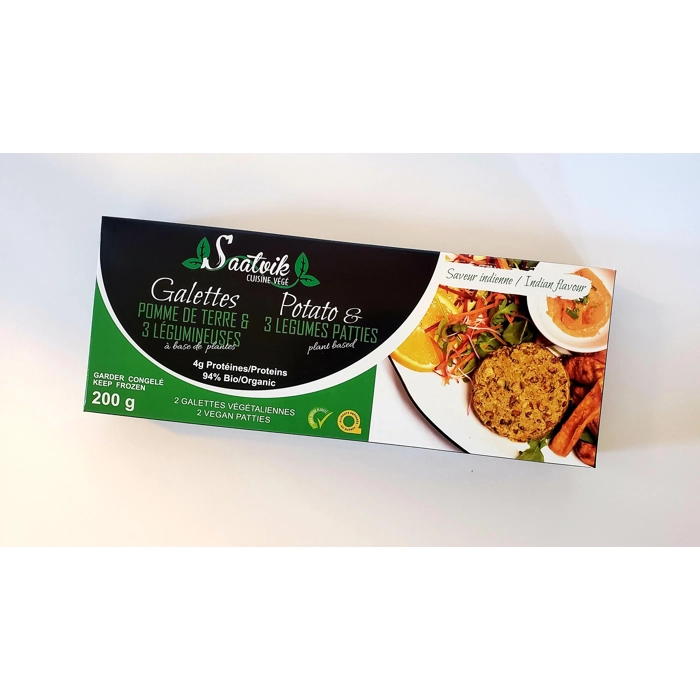 Galette épicée avec 3 variétés de légumineuses à la saveur indienne.