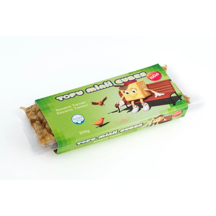 Ces petits cubes de tofu (environ 10 mm chacun) sont imprégnés de la saveur riche et savoureuse du tamari, du sésame et d’une touche d’ail. Légèrement frits pour encore plus de goût, ils sont parfaits...