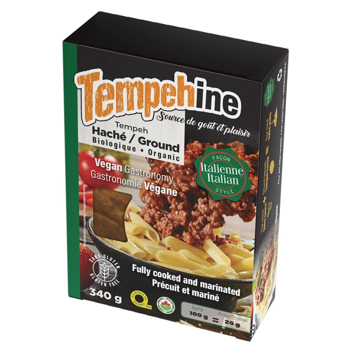 Tempeh haché biologique saveur Italienne, une excellente source de protéine végétale.