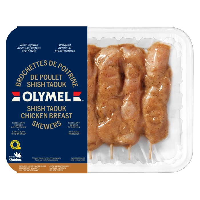 Brochettes de poitrines de poulet Shish Taouk assaisonnées, non cuites, 18 % de protéines de viande