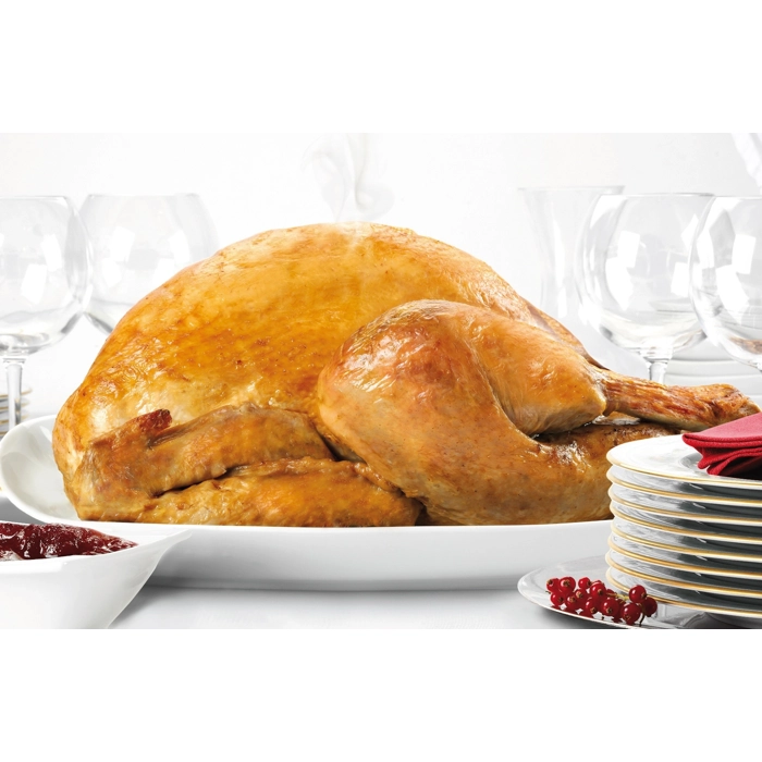 Dinde du Québec nourrie de grains, assaisonnée et cuite sous-vide à basse température dans son jus, fraîche et jamais congelée.