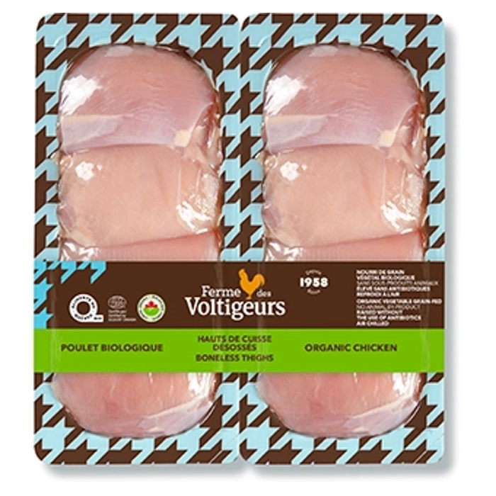 Hauts de cuisse désossées sans peau de poulet biologique