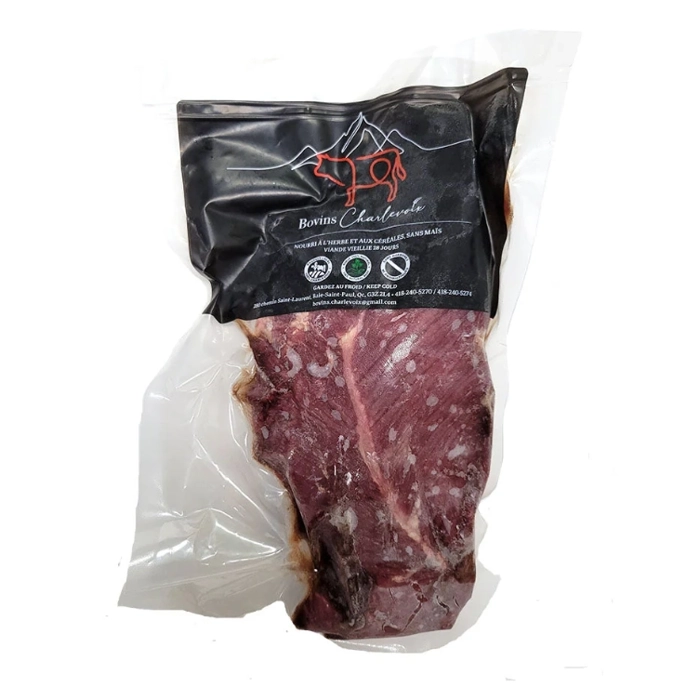 Bovins Charlevoix est une entreprise dans le secteur agroalimentaire qui se spécialise dans la finition/engraissement de boeuf, ainsi que la transformation agroalimentaire de sa viande et la mise en marché indépendante. Le but premier est d’éviter un enjeux d’exportation en valorisant des veaux de la région de Charlevoix qui étaient normalement vendus à l’encan et exportés surtout à des parcs d’engraissement de l’Ontario et au É-U. Nous offrons donc un boeuf 100% local, né dans la région de Charlevoix et qu’il y demeure tout le long de sa croissance, ainsi que sa transformation/mise en marché. C’est un boeuf 100% naturel, sans hormones de reproduction ni de croissance, ainsi que sans antibiotiques. L’environnement et le bien-être animal sont au coeur de nos pratiques, les animaux sont en pâturage et reçoivent une ration de drêche sans maïs pour avoir des fibres musculaires de qualité. Nous sommes en processus de certification biologique, donc aucun pesticides/herbicides sont utilisés dans notre régie (certification officielle prévue pour 2025). Notre viande est vieillie 28 jours pour ajouter saveurs et tendreté à nos produits. Nous commercialisons notre viande à travers le Québec, notamment dans les Avrils supermarché, d’autres épiceries naturelle/santé et des restaurants