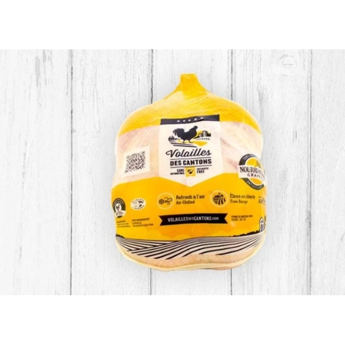 Élevé sans l’usage d’antibiotiques, poulet nourri aux grains et sans produits animaux, sans sous-produits animaux, sans graisse animale et sans farine d’os. Volailles des Cantons est soucieux de produ...