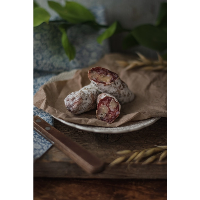 Saucisson fermenté et séché au fromage bleu l'Ermite, noix de grenoble et de poivre